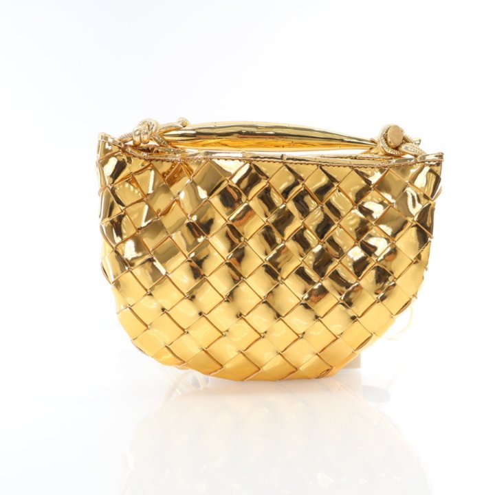 The Bottega Veneta Mini Leather Sardine is crafted from metallic leather with gold-tone hardware. Its compact and elegant design makes it perfect for evening events and special occasions.