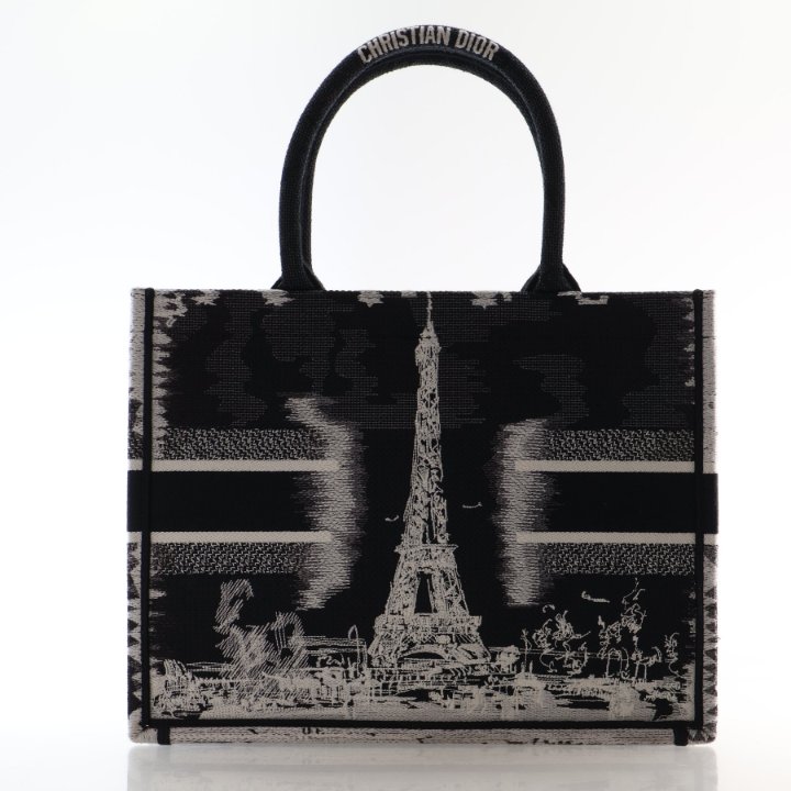 The Medium Embroidered Canvas Paris Book Tote is an iconic Christian Dior bag crafted in white and black embroidered canvas. Designed with a spacious interior and structured silhouette, it is ideal for daily use, travel, or carrying essentials in style.